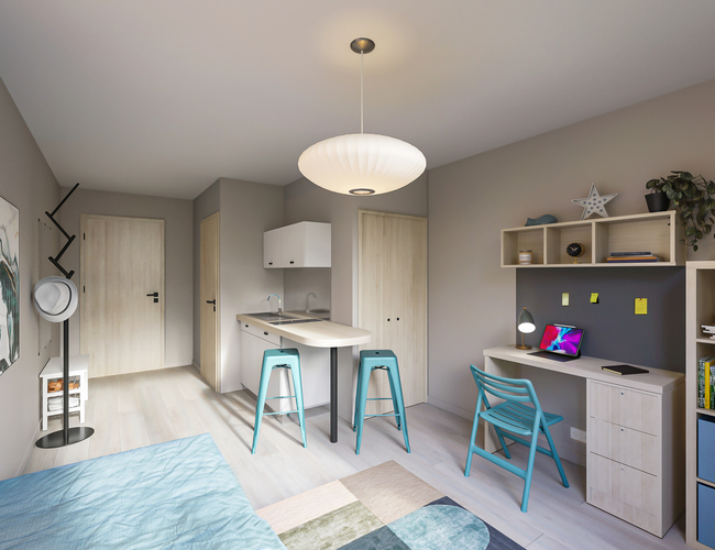 Faubourg 13.17 est une résidence étudiante de 110 logements, pensée pour offrir aux étudiants un cadre de vie fonctionnel, confortable et durable.