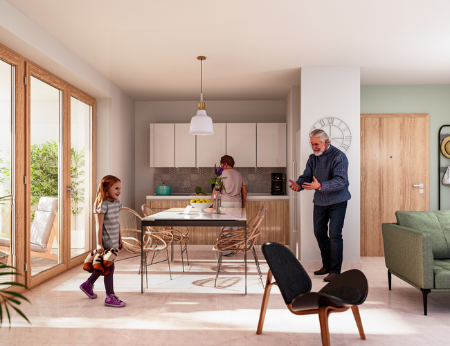 Les appartements d’Auguste offrent des espaces optimisés, baignés de lumière naturelle et ouverts sur l’extérieur.