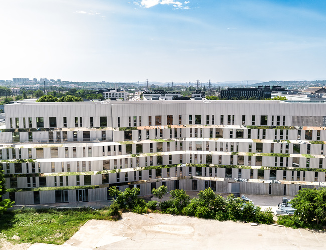 Doté de 6 884 m² de bureaux répartis sur 5 étages, il offre des espaces de travail flexibles, lumineux et adaptés aux besoins actuels des entreprises. Chaque niveau dispose de terrasses et balcons, apportant confort et bien-être aux utilisateurs. des espaces végétaux complètent cet environnement